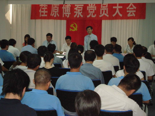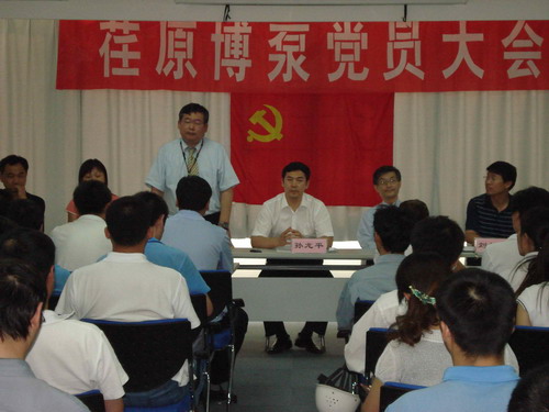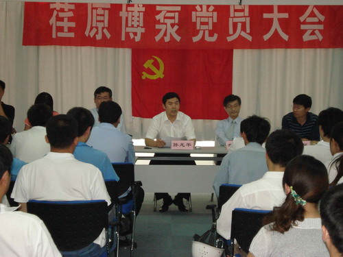 本次黨員大會由黨總支副書記姜作棟同志主持,他首先介紹了黨組織機構(gòu)的組成:張玉琴同志任黨總支書記,姜作棟同志任黨總支副書記,李正民同志、劉擁民同志、王興春同志分別任統(tǒng)戰(zhàn)委員、組織紀(jì)檢委員、文體宣傳委員。荏原博泵黨總支下設(shè)管理、生產(chǎn)、質(zhì)量和業(yè)務(wù)技術(shù)四個黨支部,管理黨支部書記由邱建剛同志擔(dān)任,生產(chǎn)黨支部書記由宋遵民同志擔(dān)任,質(zhì)量黨支部書記由郝圣同志擔(dān)任,業(yè)務(wù)技術(shù)黨支部書記由梁文運同志擔(dān)任。各黨支部通過民主選舉選出了支部委員。在會上,黨總支書記張玉琴同志向全體黨員提出要求,一是加強學(xué)習(xí),提高素質(zhì);二是增強黨性,努力工作;三是加強領(lǐng)導(dǎo),發(fā)揮作用。著重強調(diào)了全體黨員不僅要有較高的政治素質(zhì),更要有很強的業(yè)務(wù)能力和技術(shù)水平。要一如既往的發(fā)揮黨員的先鋒模范作用,以企業(yè)經(jīng)濟發(fā)展為中心任務(wù),身先士卒,帶頭努力干好工作,在營造團結(jié)和諧的工作氛圍中發(fā)揮作用。公司總經(jīng)理孫龍平同志在黨員大會上代表行政領(lǐng)導(dǎo)班子作了重要發(fā)言,指出目前公司正處在打基礎(chǔ)的關(guān)鍵時期,邊建設(shè)、邊生產(chǎn)、邊供貨、邊發(fā)展。黨組織要充分發(fā)揮政治核心作用,領(lǐng)導(dǎo)工會、共青團等群眾組織,團結(jié)凝聚廣大員工,貫徹黨的方針政策,促進(jìn)企業(yè)健康發(fā)展。