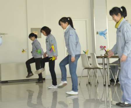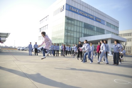 在踢毽子比賽現(xiàn)場,只見毽子上下翻飛,隊員們不急不慢,沉著應對。在跳繩比賽現(xiàn)場,繩子在隊員手中有節(jié)奏的搖著,每個人和著自己的節(jié)奏,有的跳的輕快、有的越著急越絆腳,周圍看的員工也跟著著急。最吸引人的還是集體項目“跳長繩”,每個隊8名隊員,2人搖繩,其余6名隊員魚貫從跳繩中穿過,然后再從另一邊跳入,隊員們配合默契、身輕如燕 ,觀眾們加油聲此起彼伏,整個現(xiàn)場一片歡樂。最終,獲得踢毽子比賽前三名分別是:牛艷春、鹿子云、焦金玲。獲得跳繩比賽前三名分別是:張洪蘭、王陽、王春;跳長繩比賽的第一名是生產(chǎn)分會。